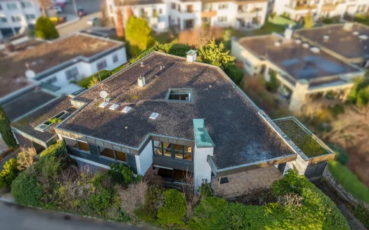 Rarität in Bestlage! Freist. Bungalow mit Atrium, 3 Terrassen, 3 Kaminen, Schwimmbad u. 2 Garagen!