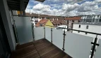 Der knapp 7 Quadratmeter große, überdachte Balkon in östlicher Ausrichtung ist mit einem ansprechenden Holzbelag versehen und dient als attraktive Erweiterung des Wohnraums.