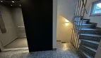 - großformatige, anthrazitfarbene Fliesen – integrierte Deckenbeleuchtung