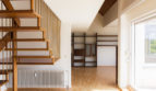 Eine Podesttreppe aus Holz führt zur oberen Ebene im Dachgeschoss. Hier befinden sich die offene Galerie, 3 weitere Zimmer sowie ein Tageslichtbad mit Badewanne, Dusche, Doppelwaschtisch und WC.