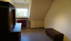 Über eine Holzwangentreppe gelangen Sie ins ausgebaute Dachgeschoss mit einem lichtdurchfluteten Zimmer (ca. 18 qm Grundfläche) und schönen Aussichten in die naturnahe Umgebung. In dem Vorraum vor dem Zimmer befindet sich ein Waschbecken sowie der Zugang zu einer Abstellkammer, die Ihnen praktischen Stauraum bietet.