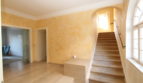 Durch den bepflanzten Vorgarten führen breite Stufen zum Eingang des Hauses mit einer stattlichen Haustür aus Massivholz, die vermutlich aus der Epoche der Bauzeit stammt. Über einen kleinen Windfang im Erdgeschoss gelangen Sie in den zentralen, eleganten Eingangsbereich, der durch seine Größe und die Raumhöhe von über 3 Metern beeindruckt. Von hier schließen sich die weiteren Räume an, das helle Wohnzimmer mit Erker, das Esszimmer mit zweiflügeliger Glastür, die großzügige Küche mit Sitzecke und Zugang zur Terrasse sowie der kleine Flur mit Garderobe und das Gäste-WC.