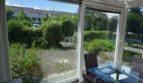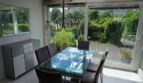 Ein zusätzlicher sehr heller Essplatz befindet sich in einem später ergänzten gläsernen Anbau, dem Wintergarten, mit Sicht und großzügiger Öffnung mittels Schiebetüre zur vorderseitigen Terrasse.