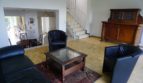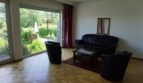 Der großzügige Wohnraum mit bodentiefen Fensterflächen, die den Raum optisch öffnen und die herrliche Sicht in den eigenen Garten und die Umgebung freigeben, befindet sich nach wenigen Stufen auf erster Staffelebene, mit offenem Raumbezug zum unteren Bereich des Gebäudes. Die Öffnung zur hinteren Terrasse und der Zugang in den eigenen Garten erfolgt mittels einer großen zweiflügeligen Glastür. Eine massive Treppe führt von der Terrasse hinab in den eigenen Garten.