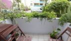 Die überdachte Terrasse ist vom Wohnzimmer sowie vom Schlafzimmer aus begehbar und nach Westen ausgerichtet. Der schön angelegte Garten wird von den Mietern liebevoll „gehegt und gepflegt“.