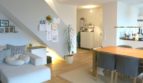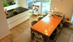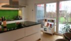 Im Erdgeschoss befindet sich der großzügige Wohn-Essbereich mit offener Küche, bodentiefen Fensterflächen und Zugang zur der nach Westen ausgerichteten Terrasse und einem kleinen umlaufenden Gartenanteil. Die Terrasse wurde erst kürzlich von den Eigentümern auf ca. 25 qm vergrößert. Im Eingangsbereich befindet sind ein Abstellraum und ein Gäste-WC.