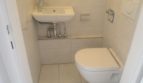 Das innenliegende Duschbad verfügt über eine Dusche mit Echtglas sowie einen beleuchteten Spiegelschrank und einer Deckenbeleuchtung. In der nagelneuen weißen Marken – Einbauküche sind alle gängigen Elektrogeräte, wie Geschirrspülmaschine (Neff), Herd mit Cerankochfeld (Siemens), Kühlschrank, Gefrierschrank sowie eine Granitarbeitsplatte und Edelstahlspüle vorhanden.